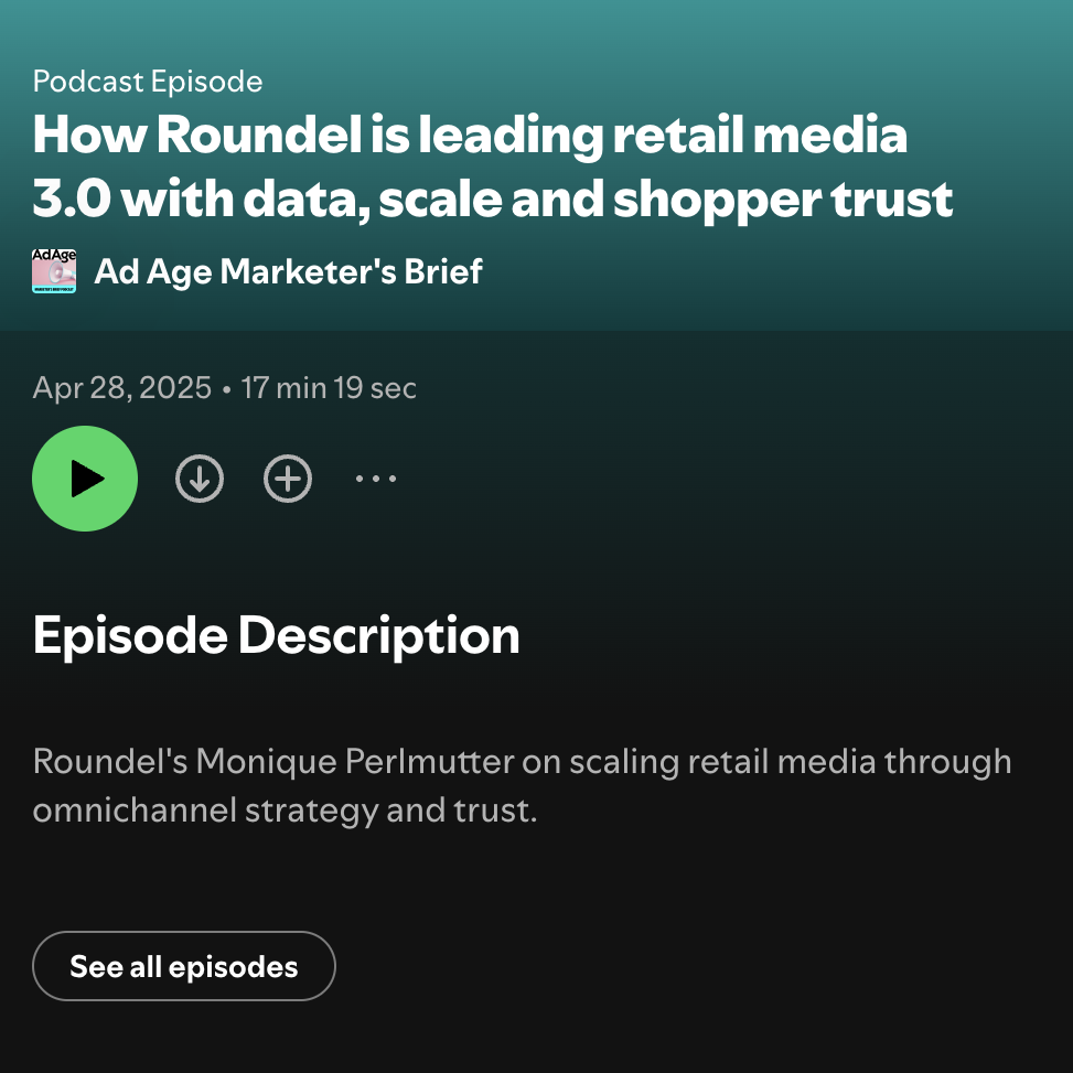 This episode explores how Target’s Roundel is evolving retail media beyond basic on-site ads into a full-funnel, data-driven ecosystem. The conversation unpacks how first-party data, measurement rigor, and shopper trust intersect—and why scale alone isn’t enough without transparency and performance accountability. Positioned at the inflection point of retail media’s next phase, the discussion offers a clear view into how legacy retailers are redefining what “modern” media networks look like.