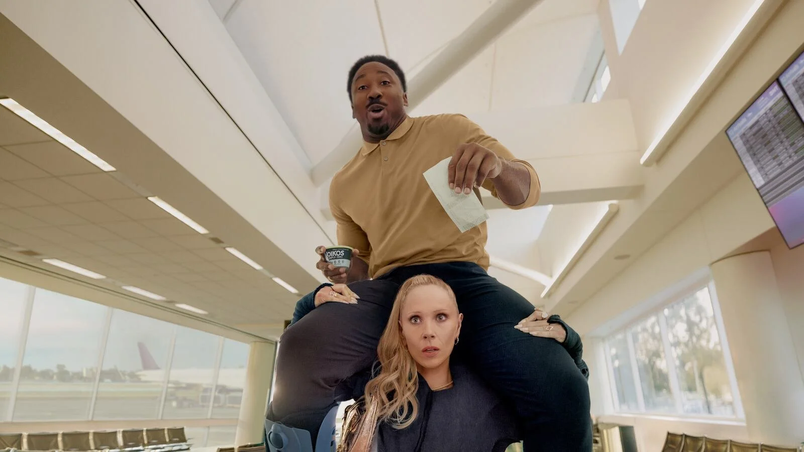Oikos’ Super Bowl 2025 “Surprising Strength” spot teamed “Ted Lasso” star Juno Temple with Cleveland Browns defensive end Myles Garrett for an action-packed, humorous race through an airport, fueled by Oikos high-protein yogurt.