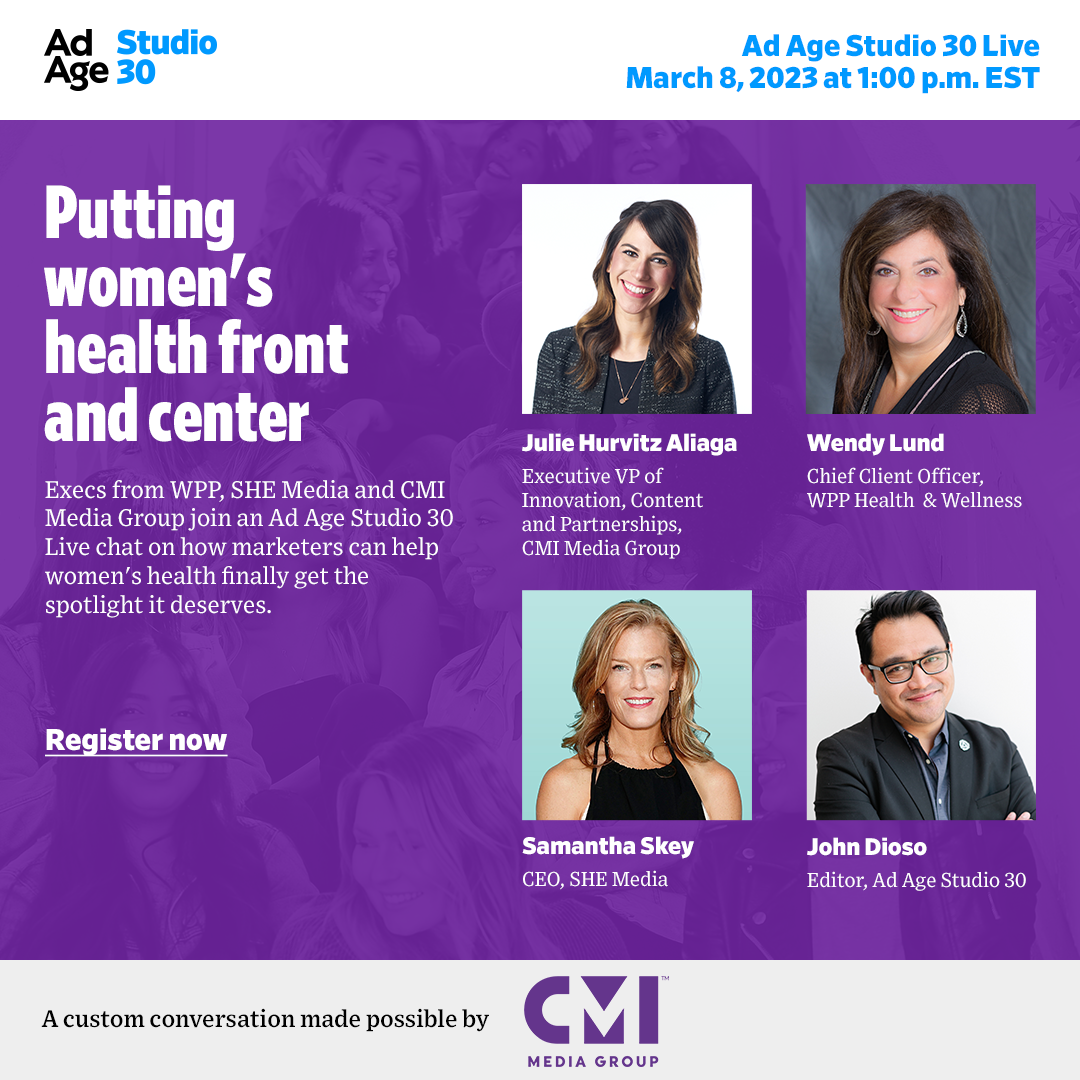 Ad Age’s Studio 30 Live offered clients like SHE Media and guests like WPP and CMI Media Group the opportunity to dive deeper into major issues such as how marketers can deliver the best messaging tailored to women's health.